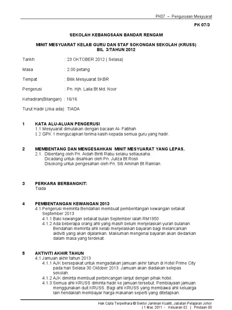 Minit Mesyuarat In English Example : Minit Mesyuarat Akhir Tahun